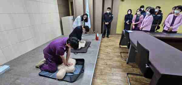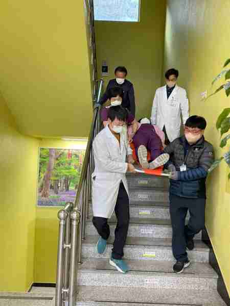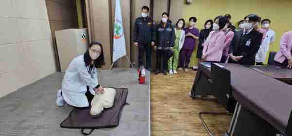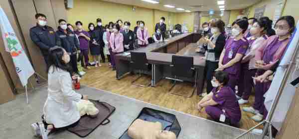 훈련내용 : 소방교육, 심폐소생술, 소화기 사용법, 소화전 사용법, 환자대피