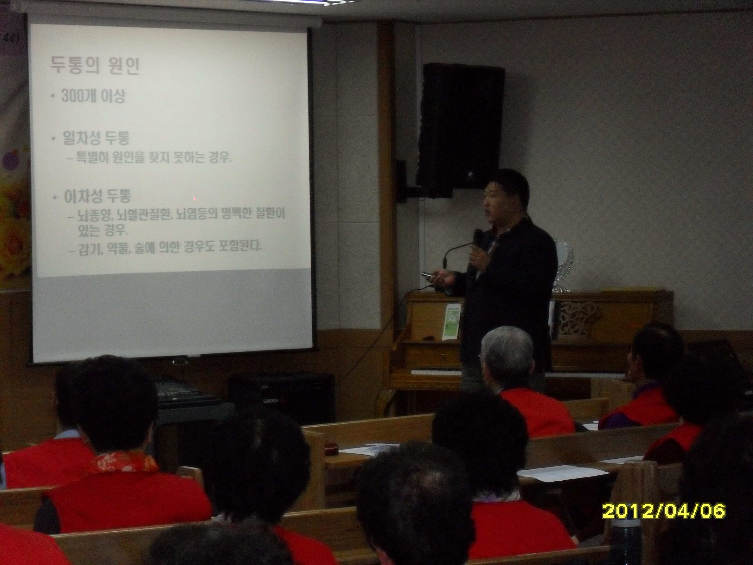 ◆ 왜관제일 노인대학 특강- 강 사 : 혜원성모병원 신경과 김정찬 과장- 특강내용 : 노인의 건강관리- 일 시 : 2012년 04월 06일(금) 11:00- 장 소 : 왜관제일 노인대학