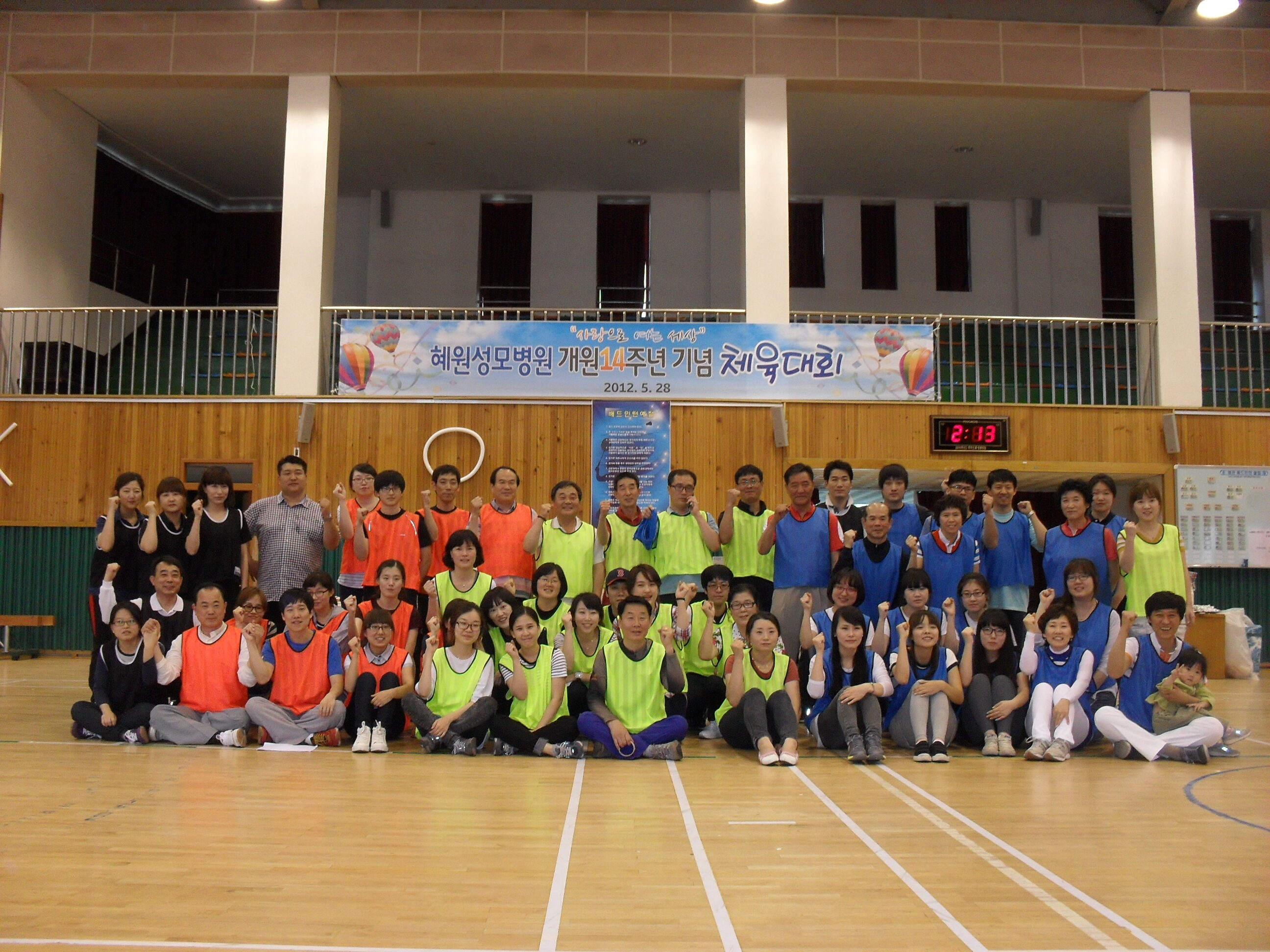 개원 14주년 기념일을 맞이하여 혜원가족과 함께개원기념식 및 체육대회를 개최하였습니다.- 일 시 : 2012년 05월 28일 (월)- 장 소 : 왜관중앙초등학교