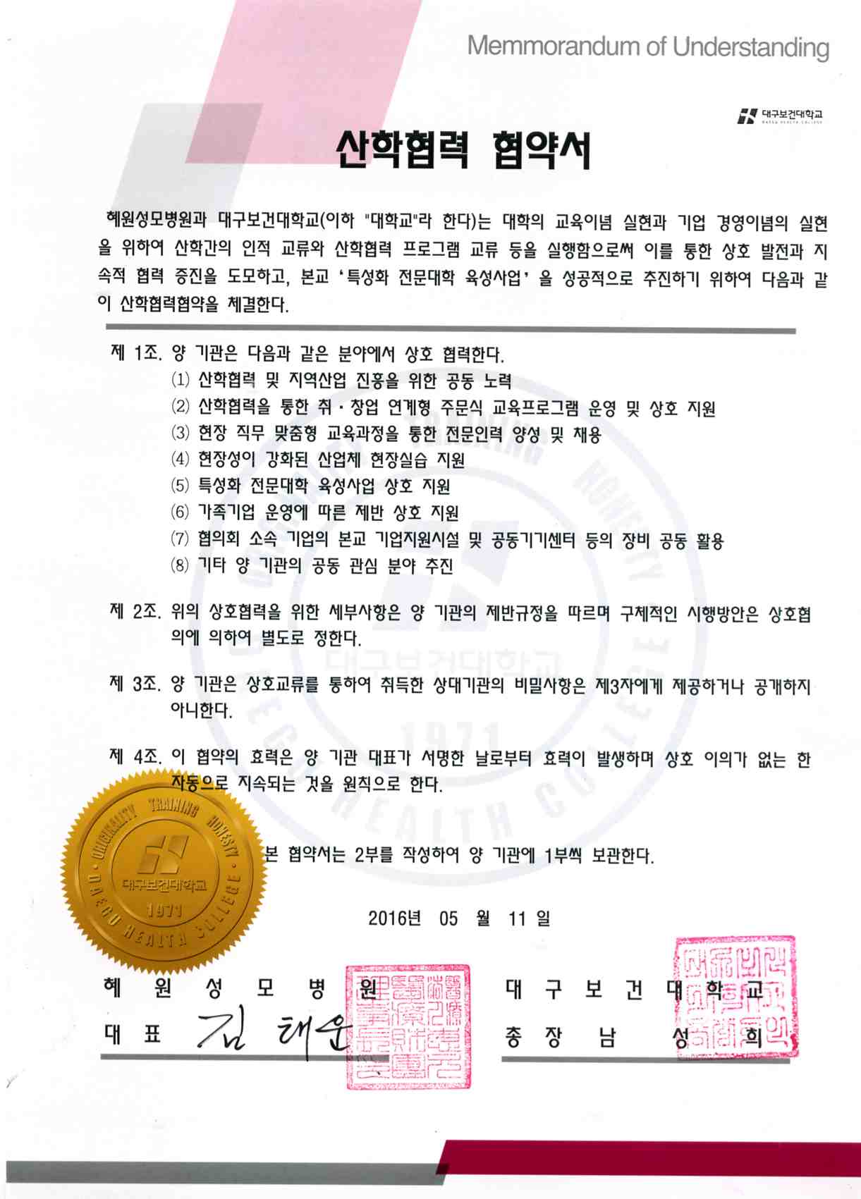 - 상호 발전과 지속적 협력증진을 위해 산학협동협약을 체결하였습니다.