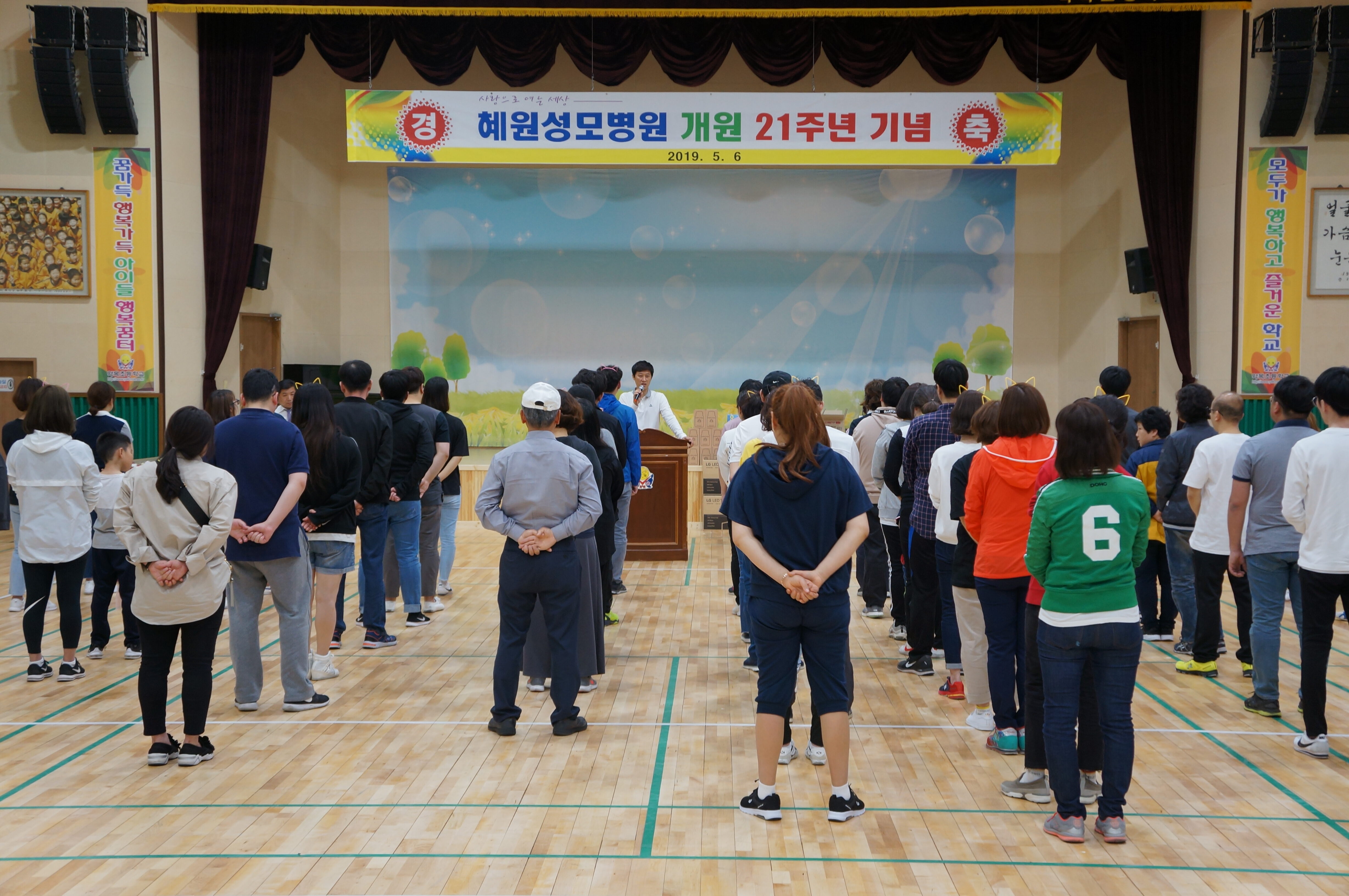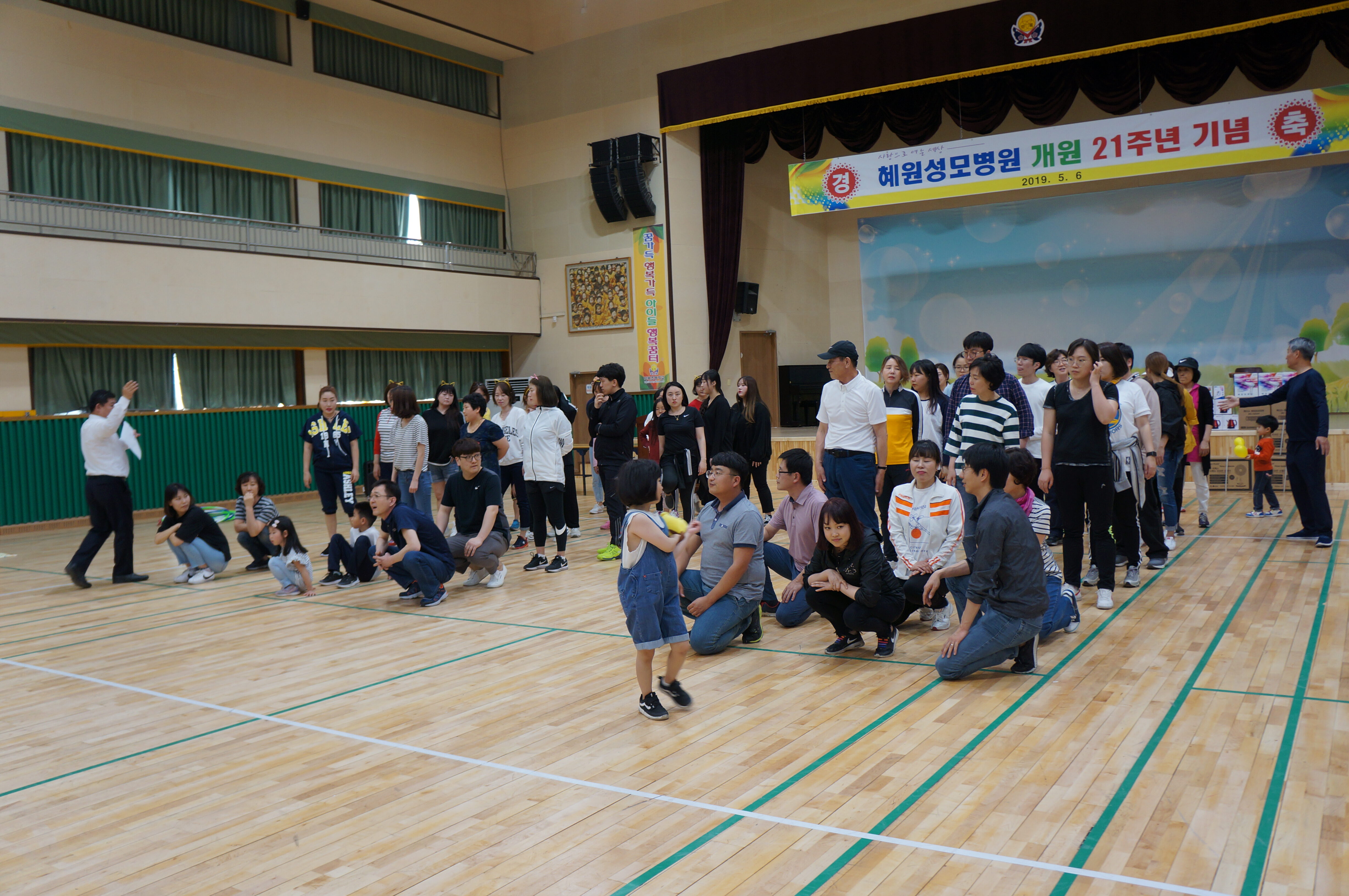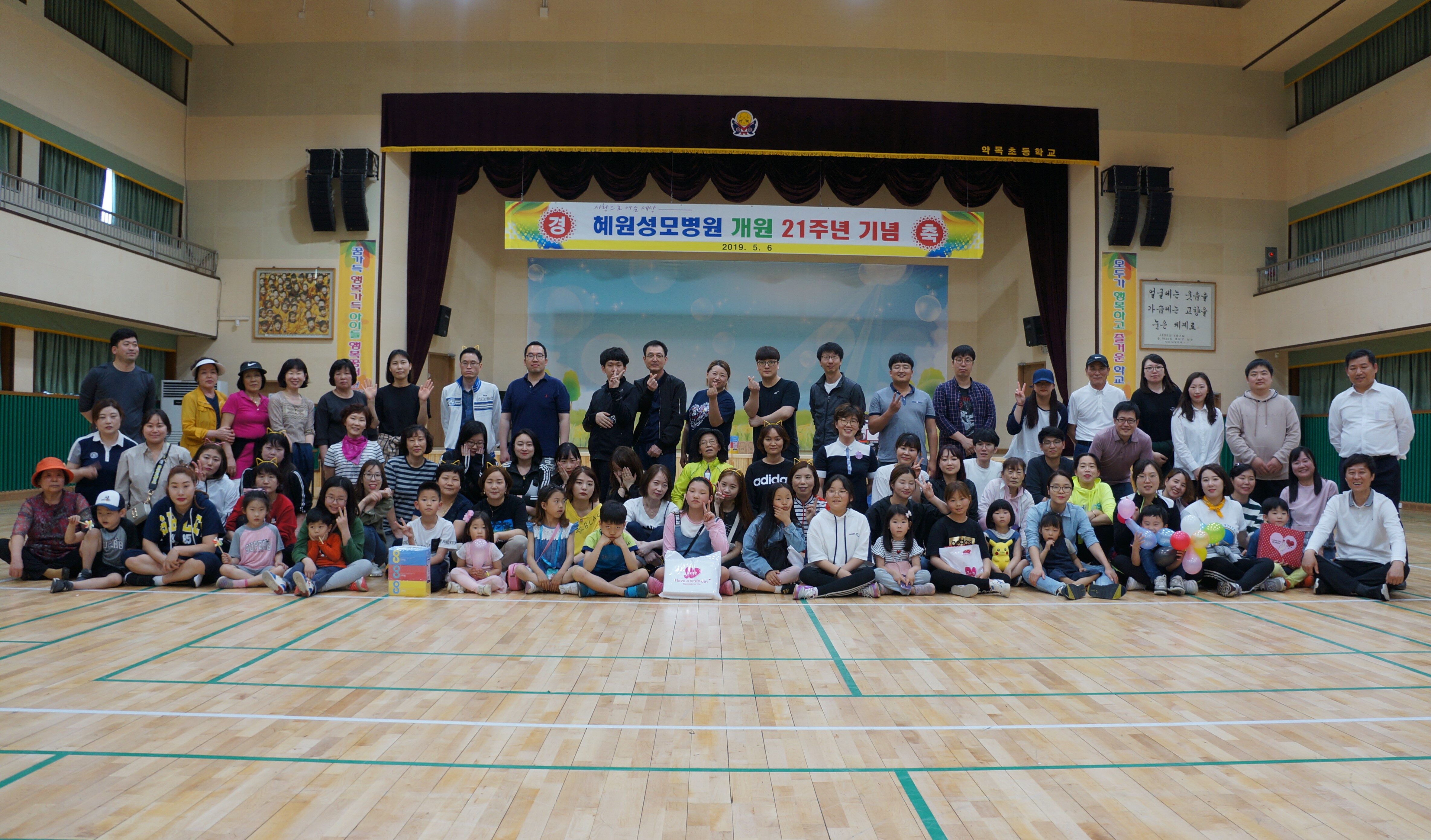 『 개원 21주년 기념 및 가족 단합대회 』 1. 일 시 : 2019년 05월 06일 2. 장 소 : 약목초등학교 실내체육관 3. 혜원성모병원 개원 21주년 , 칠곡혜원요양병원 개원 5주년 기념 단합대회