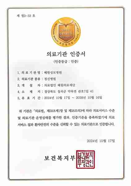1. 혜원성모병원의 전체 환자 안전 및 의료서비스 수준 향상을 위한 인증