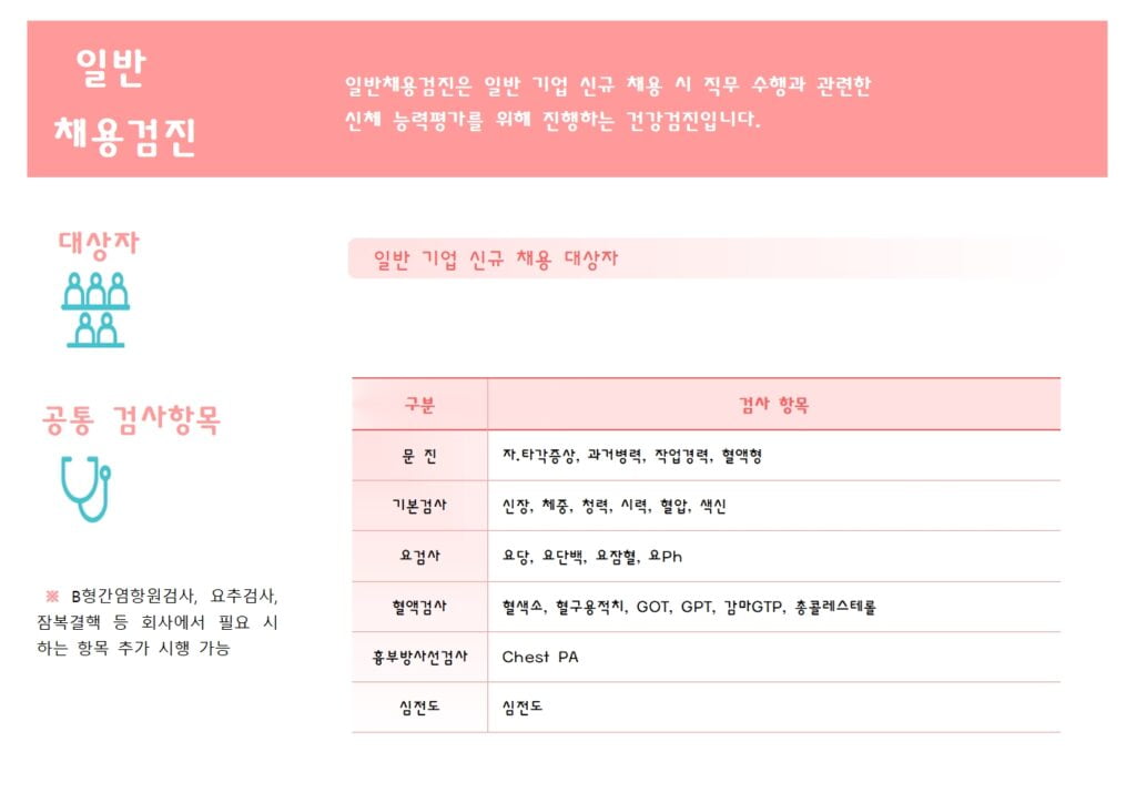 HOME > 건강검진 > 기타검진 > 일반채용검진